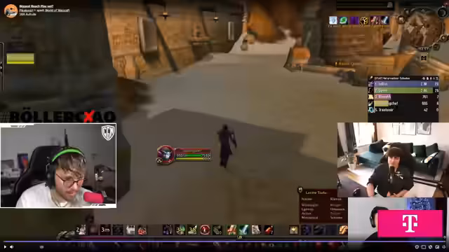 03:31:45Der Streamer versucht die letzten Gildenmitglieder zu porten und gibt den Status der Port-Steine bekannt. Nagura und Noserino fehlen noch. Währenddessen macht ein Zuschauer den provokanten Kommentar: 'Wenn meine Mutter nur jemanden wie dich kennengelernt hätte, würde ich jetzt nicht WoW spielen.' Der Streamer ist baff von dieser Aussage und fragt sich, was damit gemeint ist, ob es sich um eine Beleidigung oder etwas anderes handelt.