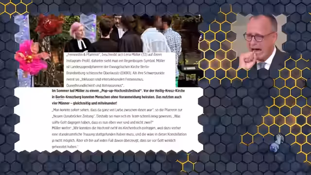 00:04:26Eine evangelische Pfarrerin hat vier Männer getraut, was weder nach Kirchenrecht noch nach deutschem Staatsrecht zulässig ist und als Symbolveranstaltung gewertet wird. Auffällig ist, dass alle vier Männer Ausländer waren. Die Pfarrerin sieht ihren Schwerpunkt in Inklusion, intersektionalem Feminismus, Queerfreundlichkeit und Antirassismus. Dies wird als Beispiel dafür gesehen, dass es bei der Homo-Ehe nicht primär um Teilhabe, sondern um die Delegitimierung traditioneller Institutionen geht. Es wird darauf hingewiesen, dass die Pfarrerin trotz dieser umstrittenen Aktion offiziell in kirchliche Strukturen eingebunden ist und ihre Handlungen nicht als isolierter Fall einer 'irren' Person abgetan werden können, sondern als Ausdruck einer breiteren Entwicklung innerhalb der Kirche.