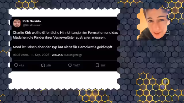 01:02:23Die Reaktion der Medien auf den Tod von Charlie Kirk wird kritisiert, insbesondere die Äußerungen von Dünja Hayali im ZDF-Heute-Journal, die als Entgleisung bezeichnet werden. Es wird ihr vorgeworfen, den Tod Kirks indirekt gerechtfertigt zu haben, indem sie seine politischen Ansichten hervorhob. Zudem wird die Freude über seinen Tod in linken Kreisen angeprangert, darunter ein Post der Linksjugend Hanau, der als besonders perfide kritisiert wird, da er ein Foto von Kirk mit seiner Tochter zeigt. Es wird argumentiert, dass diese Entmenschlichung eine Vorbereitung auf Gewalt sei. Rick von den Space Frogs wird zitiert, der auf Kirks Positionen zu öffentlichen Hinrichtungen und Abtreibung hinweist, um die Kontroverse zu verdeutlichen. Es wird betont, dass Kirk tiefgläubig war und Abtreibung ablehnte, aber seine Positionen oft durch die Zuspitzung in Debatten verzerrt wurden. Abschließend wird die Reaktion im EU-Parlament thematisiert, wo ein Versuch, eine Schweigeminute für Kirk abzuhalten, abgelehnt wurde, während für George Floyd eine solche abgehalten wurde.