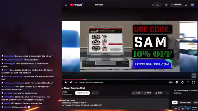 00:09:01Es wird eine letzte Meldung in eigener Sache angekündigt, da Kasper von der Telekom erwartet wird, um Unregelmäßigkeiten bei den Abbuchungen vom Konto seiner Oma zu klären. Kasper und Schlomo diskutieren über Sam Hyde und seine Werbung, insbesondere für "Stiff Lip Subs". Kasper findet die Werbung unterhaltsam und zeigt sie Schlomo, um seine Meinung einzuholen. Die beiden analysieren den Humor und die künstlerischen Aspekte der Werbung. Die Werbung enthält Copyright-Musik, die später von YouTube stummgeschaltet wurde. Es wird über den Inhalt der Werbung gesprochen, einschließlich Anspielungen auf Militär, Koffein und sarkastische Aussagen. Kasper erwähnt, dass er nicht glaubt, dass Sam Hyde mit einem Skript arbeitet und seine Inhalte weitestgehend improvisiert sind. Schlomo hingegen findet Kaffee ekelhaft und bevorzugt Espresso, während Kasper Kaffee in größeren Mengen konsumiert, als ihm guttut. Sie tauschen sich über ihre Koffein-Gewohnheiten aus und diskutieren über die Wirkung von Espresso im Vergleich zu normalem Kaffee.