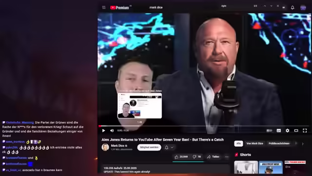 00:18:32Es wird über Sam Hydes frühere Karriere im Mainstream-Fernsehen gesprochen, einschließlich seiner Sendung "Million Dollar Extreme" auf Adult Swim. Die Sendung wurde aufgrund von Beschwerden über ihre politische Ausrichtung abgesetzt, nachdem BuzzFeed einen Artikel veröffentlicht hatte. Kasper erzählt, dass Sam Hyde das Gespräch mit dem Reporter aufgezeichnet und auf seinem YouTube-Kanal veröffentlicht hat. Die beiden diskutieren über die Ironie und den Umgang mit Kritik in Hydes Karriere. Kasper wird während des Streams von der Telekom angerufen und muss den Stream kurzzeitig verlassen. Schlomo übernimmt die Unterhaltung und spricht über Juice Rock und andere kontroverse Inhalte von Sam Hyde. Es wird über YouTube-Sperren und die mögliche Wiederherstellung von Kanälen gesprochen, die aus politischen Gründen gesperrt wurden. Kasper äußert Skepsis, ob dies für ihren Kanal relevant sein wird, da YouTube wahrscheinlich bestreiten wird, dass die Sperrung politische Gründe hatte. Die beiden diskutieren über die Schwierigkeiten, gegen YouTube vorzugehen und die unterschiedliche Handhabung von Sperren in Deutschland im Vergleich zu den USA.