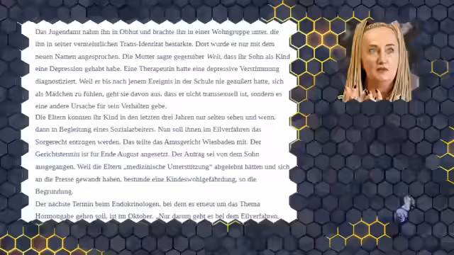 00:31:44Der Stream kritisiert den Woke-Kurs im Bildungswesen. Ausgangspunkt ist der Fall eines 14-jährigen Jungen in Hessen, der nach einem Toleranztag als Frau identifiziert wurde und sich nach dem Feriencamp als trans fühlt. Seine Eltern wehren sich gegen eine Hormontherapie, woraufhin das Jugendamt das Kind aus der Familie holte. Ein Sorgerechtsverfahren läuft nun, da das Paar dem endgültigen Entzug droht. Der Stream sieht darin Beispiele für staatliche Übergriffe und die Verschwörung, aus Jungen Mädchen zu machen.