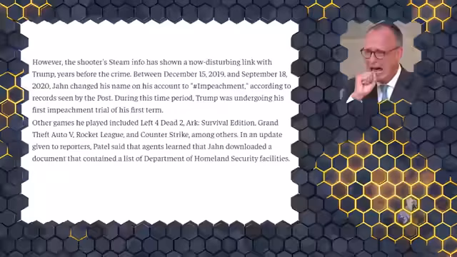 00:41:58Bei dem Täter Joshua Jan wurde ein Zettel mit seiner Motivation gefunden: 'Eisagenten in Angst und Schrecken versetzen, damit sie jeden Tag daran denken müssen'. Der Bruder des Täters behauptete jedoch, sei sei unpolitisch gewesen. Interessant ist auch Joshuas Online-Aktivität - sein Steam-Account trug den Namen Impeachment während des Amtsenthebungsverfahrens gegen Trump. Der Täter wies eine extreme Fixierung auf Gewaltspiele auf - er verbrachte 17.500 Stunden mit Shootern, was einem Jahr 24/7 ohne Schlaf entspricht. Sein Handeln scheint Teil einer größeren Welle linker Gewaltakte in den USA zu sein, die direkt auf Trumps Politik reagiert.
