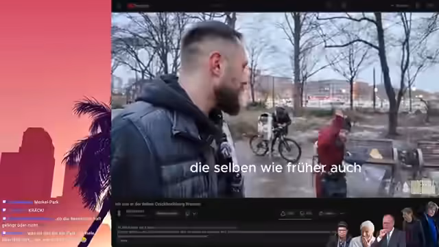 00:29:00Nachdem die Untersuchung des Dekalent-Vorfalls abgeschlossen ist, kommt der Streamer zum angekündigten Hauptinhalt: Die Betrachtung eines Kanals namens "Wiederhall". Er hat dessen Videos noch nicht gesehen und ist gespannt. Hall, der seit vier Monaten aktiv ist, dokumentiert Kriminalität und Drogenprobleme in linken Hochburgen wie Bremen. Das erste Video zeigt den Hauptbahnhof der Stadt, der vom Streamer als typisch für Westdeutschland beschrieben wird. Es folgt eine Tour durch einen Teil des Stadtteils, die von einer Gedenkstätte für Nelson Mandela unterbrochen wird. An diesem Punkt beginnt eine kontroverse Diskussion über die kriminelle Vergangenheit Mandelas und seine Verurteilung, die der Streamer mit seinen Zuschuern diskutiert.