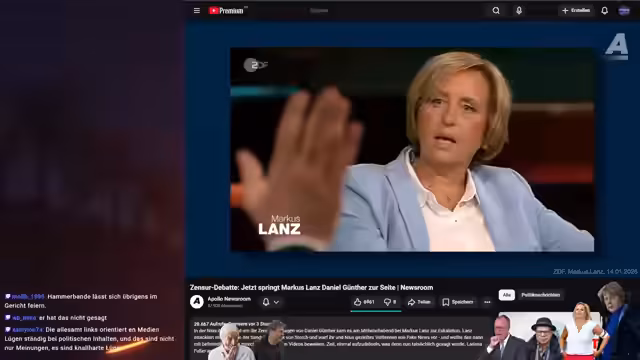 00:01:36Der Streamer widmet sich der Analyse der Aussagen von Daniel Günther in der Markus-Lanz-Sendung, die er auf Twitter gesehen hat. Es ging um die Bezeichnung von News-Portalen als Feinde der Demokratie und mögliche Forderungen nach einem Verbot oder Zensur. Nach dem Gesehenen ist der Streamer überzeugt, dass Günther ein News-Verbot ins Spiel gebracht hat, auch wenn dies kontrovers diskutiert wird. Die Diskussion wird als unangenehme Kindergartendiskussion beschrieben, die jedoch beängstigend ist, da sie Grundrechte betrifft.