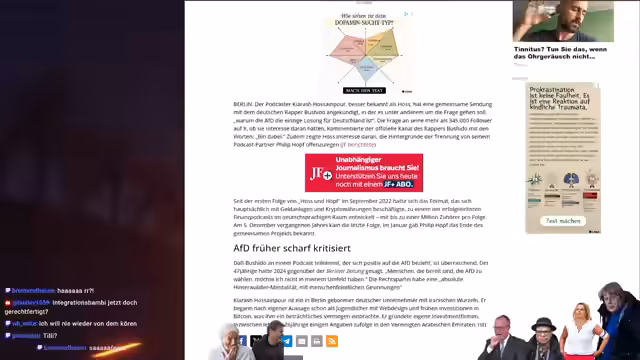 00:55:02Der Streamer berichtet über eine musikalische und politische Überraschung: Der Rapper Bushido plant einen Podcast mit dem Podcaster Hoss (Hossein-Pur), der als AfD-freundlich beschrieben wird. Der Streamer erklärt den Hintergrund zu Bushidos Herkunft, der sich früher als Tunesier identifizierte, aber kein Arabisch spricht. Er bemerkt die Ironie, dass Bushido nun plötzlich deutsche Interessen fördern will, während er in Dubai lebt. Der Streamer sieht darin einen popkulturellen Einfluss und kündigt an, sich den Podcast anzuhören, auch wenn er kein Dauerhörer sein wird.