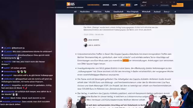 01:34:49Nach dem Stromausfall in Berlin haben sich linke radikale Gruppen zu einem Bekennerschreiben bekannt. Der Anschlag, der 50.000 Haushalte betraf, wurde als symbolisch, aber nicht schlecht bewertet. Es wurden weitere geplante Anschläge auf Einrichtungen von Elon Musk oder promännliche Influencer-Veranstaltungen diskutiert, inklusive Anleitungen zum Vernichten von DNA-Spuren. Dies zeigt eine radikalisierende Szene, die Anschläge auf zivile Infrastruktur plant.