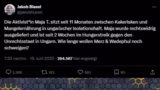 00:29:40Der Streamer berichtet kurz von der Bemühungen unpolitischer und linker Politiker, um die Freilassung von Simeon Trucks (Maya T) aus Ungarn zu erreichen. Als Unland der Woche werden die USA präsentiert, nachdem die Plattform Blue Sky, die als Zuflucht für „Verstrahlte“ von Twitter galt, den US-Vizepräsidenten J.D. Vance innerhalb von zwölf Minuten nach dessen erstem Post sperrte. Der Vorfall wird als Zeichen der Instabilität und als „Kindergarten nur für die“ Woke-Szene gewertet.