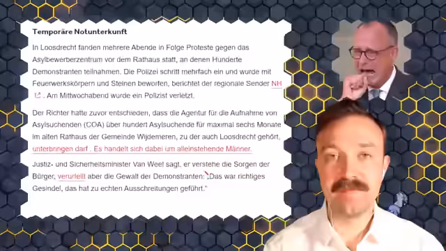 00:37:04In Holland sorgt die geplante Einrichtung eines Asylheims in einem alten Rathaus für massive Proteste. Anwohner stemmen sich gegen die Unterbringung von 110 Asylbewerbern. Bilder zeigen, wie地方政府 mit Holzschilden auf friedliche Demonstranten einschlägt, ähnlich wie während der Corona-Proteste. Hollands Justizminister spricht von 'rechtem Gesindel' und bezeichnet die Proteste als 'echte Ausschreitungen'. Gleichzeitig in Ungarn: Ministerpräsident Orbans Nachfolger Viktor Orbán-Junior macht mit der Ernennung von Judith Lannert zur Bildungsministerin von sich reden. Lannert steht für gender-sensible Bildungs- und Wissenschaftspolitik, was zeigen dürfte, dass Ungarn sich langsam der EU annähren könnte.