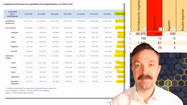 01:41:09Ein weiteres zentrales Thema ist der Sozialbetrug, bei dem Bulgaren mit 45 pro 100.000 Tatverdächtige an erster Stelle stehen. Besonders problematisch ist die Tatsache, dass 47 Prozent aller Bürgergeldempfänger Ausländer sind, was eine dreifache Überrepresentation gegenüber der deutschen Bevölkerung darstellt. Streamer kritisiert, dass durch EU-Freizügigkeit jeder nach Deutschland kommen und Sozialleistungen in Anspruch nehmen kann, was ein anhaltendes Problem darstellt.