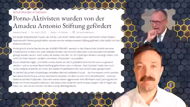00:02:04Die nächste Themenschwidt dreht sich um die Berliner Falken, eine sozialistische Jugendorganisation. Es wurde bekannt, dass die Falken mit 13 Millionen Euro aus Bundesmitteln finanziert werden. Hintergrund ist der Vorfall an einer Berliner Oberschule, wo Kindern von 'nonbinären Aktivisten' Schwulenpornomagazine ausgehändigt wurden. Der Bundestag debattierte darüber in einer Aktuellen Stunde, die von der AfD initiiert wurde. Die Falken, die sich als Jugendverein positionieren, erhalten also erhebliche staatliche Unterstützung, die nun öffentlich diskutiert wird.