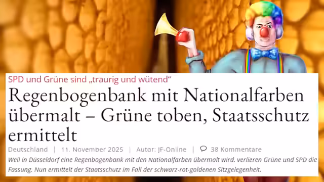 01:34:51Ein Vorfall in Düsseldorf, bei dem eine Regenbogenbank mit den deutschen Nationalfarben übermalt wurde, führt zu Empörung bei SPD und Grünen und löst Ermittlungen des Staatsschutzes aus. Die Regenbogenfahne wird als Symbol für Vielfalt, offene Grenzen und die Überwindung identitärer Trennlinien interpretiert, während die Übermalung mit den Nationalfarben als Angriff auf diese Werte wahrgenommen wird. Es wird argumentiert, dass die Verbreitung von Nationalfarben von den herrschenden Mächten als staatsgefährdend angesehen wird, selbst wenn keine Symbole übermalt werden. Der 9. November, an dem der Vorfall stattfand, wird als Tag der Hoffnung und Freiheit, aber auch des Hasses und der Zerstörung historisch eingeordnet, was die Tat in ein noch kritischeres Licht rückt. Die Diskussion beleuchtet die unterschiedlichen Interpretationen von nationaler Identität und Vielfalt und kritisiert die Doppelmoral, mit der bestimmte Symbole und Handlungen bewertet werden. Die Regenbogenfahne wird als Gegenteil nationaler Identität und als Symbol für die Auflösung des Volkes und seiner Geschichte dargestellt.