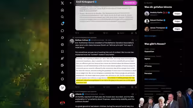 02:30:45Es werden Prognosen zur zukünftigen demografischen und kulturellen Entwicklung Deutschlands diskutiert. Der Streamer prophezeit, dass bei fortgesetzter Migration Deutschland in spätestens 200 Jahren zu einem islamischen Land werden wird. Er argumentiert, dass dies zwar kein Beweis für die Überlegenheit der islamischen Kultur sei, sondern eher das Ergebnis von Entscheidungen im Kapitalismus, die Zuwanderung zur Steigerung des BIP fördern. Es wird die These vertreten, dass Kapitalismus als Wirtschaftssystem zwar Wohlstand schafft, aber auch blinde Flecken hat, die zu Problemen wie Massenmigration führen können.