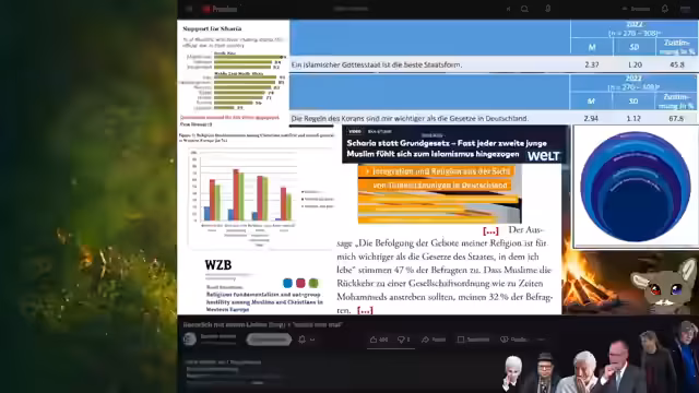 01:37:58Es wurde über Islamismus in Deutschland gesprochen, insbesondere über eine Studie, die besagt, dass eine hohe Tendenz von Muslimen in Deutschland, insbesondere unter den unter 40-Jährigen, islamistische Ansichten haben. Es wurde auch die Gefahr einer Unterwerfung des Grundgesetzes unter die Scharia thematisiert. Es wurde auch über das Phänomen diskutiert, dass deutsche Kinder aus Angst vor Muslime zum Islam konvertieren, was die dominante Position von Muslimen in manchen Schulen zeigt.