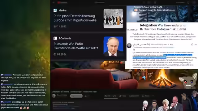 01:55:21Die Gesprächspartner setzen sich mit der Frage auseinander, warum Menschen nach Flucht aus Kriegsgebieten nicht direkt in Nachbarländer bleiben, sondern weiterziehen. Es wird die Annahme diskutiert, dass Migranten倾向于 in Länder mit ähnlicher Kultur gehen. Der Streamer fragt, ob bei einer Islamisierung Deutschlands die Kultur tatsächlich "stärker" wäre oder ob dies eher ein Prozess der Überlagerung sei. Es werden Bedenken geäußert, dass deutsche Kinder in manchen Regionen bereits zur kulturellen Minderheit geworden sind.