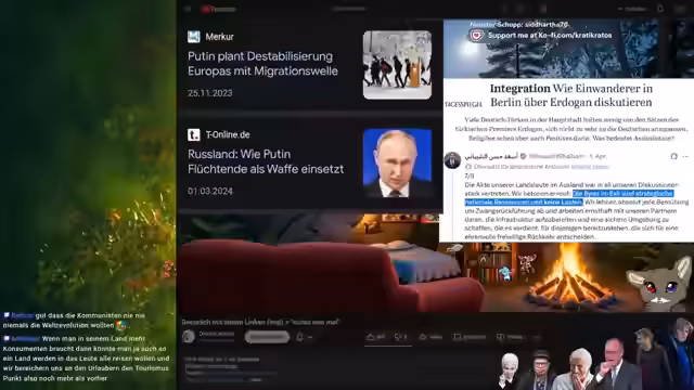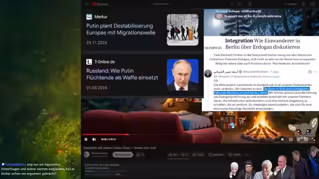 01:54:27Die Unterhaltung beginnt mit einer Diskussion über Asylrecht und die Frage, ob Migranten ortsnah fliehen sollten, damit sie bei Beendigung des Fluchtgrundes zurückkehren können. Es wird die Hypothese eines Vernichtungskriegs in Deutschland diskutiert und wer das Land danach wieder aufbauen sollte. Der Streamer argumentiert, dass es absurd wäre, anzunehmen, dass Ägypter oder andere freiwillig kommen, um Deutschland wieder aufzubauen, und betont, dass dies eine Verantwortung der eigenen Bevölkerung sein sollte.