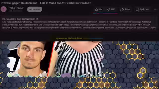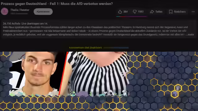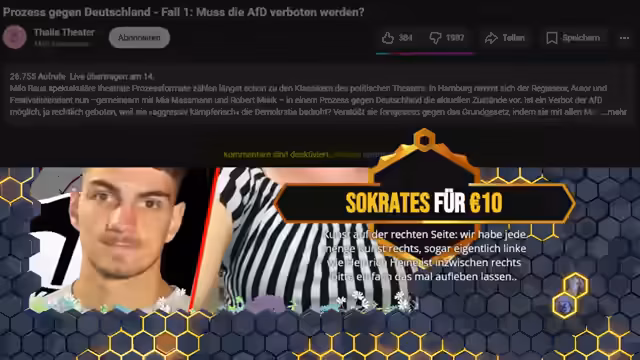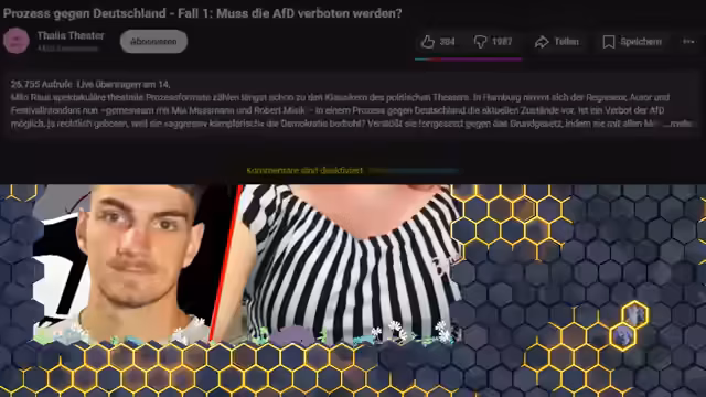 00:55:19Die Veranstaltung im Thalia Theater wird als eine Theateraufführung dargestellt, die einen simulierten Gerichtsprozess gegen die AfD inszeniert, mit dem Ziel, ein Parteiverbot zu erreichen. Ein fragwürdiges Logo, eine brennende Welt in der Hand eines Streichholzes, wird als deutliche, negative Bildsprache interpretiert. Es gibt drei Hauptfälle: ein uninteressantes Social-Media-Verbot, eine Untersuchung, ob die AfD gewalttätig ist, und den zentralen Fall eines möglichen AfD-Verbots. Feroz fungierte in diesem Rahmen als Zeuge für die Verteidigung, während die Richterin und die Verteidigerin, eine bekannte AfD-Gegnerin, als stark links eingestuft werden. Die gesamte Veranstaltung wird als einseitiges „Kaschballer-Theater“ kritisiert, in dem die von der AfD getrennte „Neue Rechte“ das eigentliche Feindbild ist.