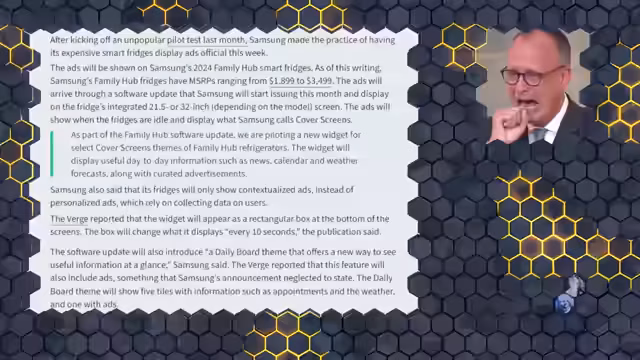 00:44:01Südkorea wird zum ersten „Unland der Woche“ gekürt, da Samsung Smart-Kühlschränke im Wert von 2.000 bis 3.500 Dollar nun Werbung im 10-Sekunden-Wechsel anzeigen. Dies wird als Übersmartisierung kritisiert, die den Nutzer mit unerwünschter Werbung konfrontiert, selbst bei teuren Geräten wie Fernsehern, wo ähnliche Praktiken bereits beobachtet werden. Die Übersmartisierung wird generell hinterfragt, mit dem Beispiel eines Shure-Mikrofons, das statt eines einfachen Knopfes eine umständliche Tippfunktion zum Ein- und Ausschalten bietet. Das zweite „Unland der Woche“ ist die Slowakei, die ein geplantes Tempolimit für Fußgänger auf Bürgersteigen wieder zurückgenommen hat. Ursprünglich sollte das Limit unter 6 km/h liegen, was zu Absurditäten wie dem Verbot des Joggens geführt hätte. Die Präzisierung, dass E-Scooter, Roller und Fahrradfahrer gemeint sind, wird als notwendig erachtet. Deutschland wird als drittes „Unland der Woche“ genannt, da ein Richter aus Gera für die Bezeichnung „Rotations-Europäer mit Eigentumszuordnungs-Spräche Für Zigeuner“ einen Freispruch erhielt. Es wird die Frage aufgeworfen, ob der Richterstatus eine Rolle spielte und ob dies ein Beispiel für die Voreingenommenheit der Justiz ist, bei der „eine Krähe der anderen kein Auge aushackt“.