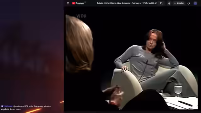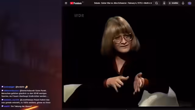 01:26:06Der Stream schließt mit einer historischen Debatte zwischen Esther Vila und Alice Schwarzer aus dem Jahr 1973, die als bahnbrechend für den Feminismus gilt. Vila propagiere einen weiblichen Feminismus, der weibliche Eigenheiten und Rollen betone, während Schwarzer einen männlichen Feminismus vertreten habe, der Frauen zur Konkurrenz mit Männern aufrufe. Vila werde in diesem Ausschnitt von einer Linken unter Druck gesetzt, was als klassische Trump-Double-Bind-Taktik beschrieben werde, bei der man nur verlieren könne. Dies diene als Beispiel dafür, wie Linke in der Vergangenheit Kritik am Feminismus unterdrückt hätten.