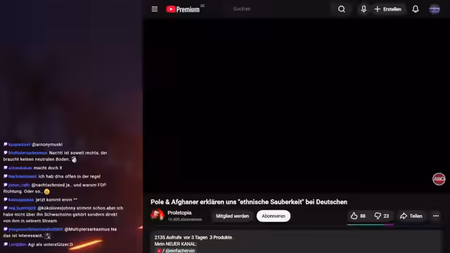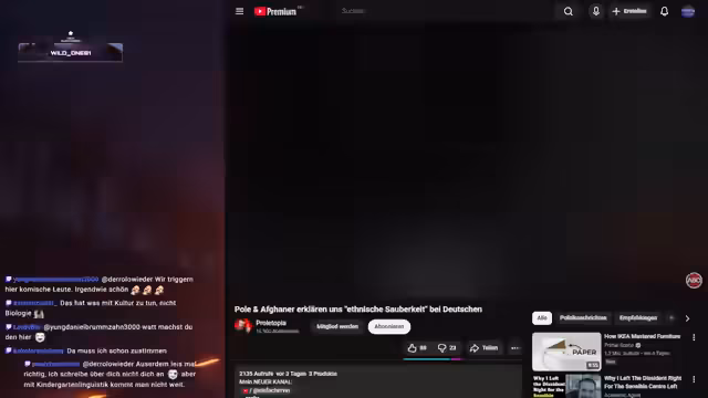 00:41:39Der Stream zeigt einen Ausschnitt von Erwin, der über Rassismus und die Definition von Deutschsein spricht. Erwin argumentiert, dass jemand, der seit zehn Generationen in Deutschland lebt und immer noch schwarz ist, ein 'kurioser Fall' sei. Schlummo kontert humorvoll, dass dieses Beispiel nicht mehr funktioniert, da Erwins Aussehen bekannt ist. Erwin kritisiert, dass die Streamer mit ihrem Aussehen solche 'Spiele' spielen, da sie wie ein Pole oder ein Tuareg/Afghanier aussehen. Schlummo entgegnet, dass sie eine Reinheitsvorstellung nicht erfüllen, die Erwin ihnen unterschieben will. Er fragt, ob die Eigenschaften genetisch sind, was Erwin später im Video anerkennt, indem er genetisch definierte Völker und Ethnien als Überbegriff dafür akzeptiert. Die Streamer betonen, dass sie in diesem Punkt recht hatten. Es wird jedoch auch kritisiert, dass Erwin übertreibt, da Schlummo zwar südländisch aussieht und polnische Vorfahren hat, aber die Streamer nicht die 'Meister-Propper-Ding' vertreten, das Erwin ihnen unterstellen will. Ihnen geht es um das Prinzip, dass diese Gruppen überhaupt existieren. Abschließend wird Ethno Erwin vorgestellt, der die Meinung vertritt, dass jemand, der die deutsche Sprache nicht spricht, keine deutsche Staatsbürgerschaft erhalten sollte, wie im Beispiel einer Frau, die bei der Einbürgerung kein Deutsch versteht, während Bundeskanzler Scholz anwesend ist. Die Streamer stimmen Erwin in diesem Punkt zu und betonen die Wichtigkeit der Sprache als wichtigsten Faktor der Kultur eines Volkes.