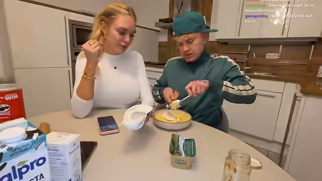 00:01:18Der Stream beginnt mit der Ankündigung, dass Kony und Amalia heute Zimtschnecken backen werden, wobei humorvoll angedeutet wird, dass Amalia die Zimtschnecken auf unkonventionelle Weise konsumieren wird. Kony scherzt über das Glazing und Amalias Beine, was zu einer Reihe von spielerischen Beleidigungen führt. Amalia zeigt sich ungeschminkt und betont, dass man nicht immer perfekt aussehen muss, was Kony bekräftigt. Es gibt auch eine Diskussion über einen gesperrten Instagram-Account von Amalia, der jedoch bald wiederhergestellt werden soll. Kony spricht über seine Teilnahme an der Kings League und die humorvollen Reaktionen auf seine Auftritte.