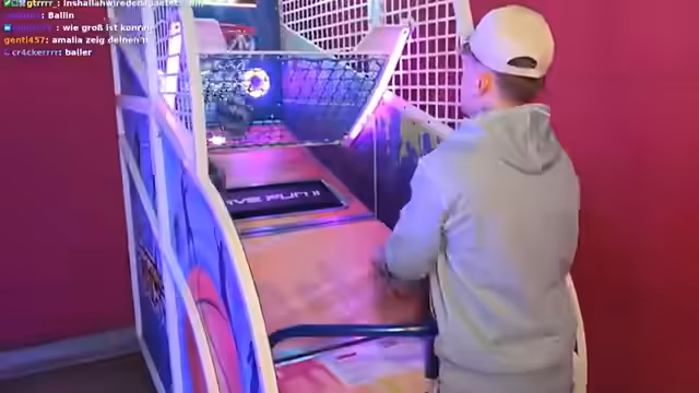 00:55:59In der Spielhalle beginnt ein Basketball-Spiel. Amalia, Kony und Julia treten gegeneinander an, wobei sie jeweils Geld in die Automaten werfen, um Runden zu spielen. Kony und Amalia spielen Runde um Runde, wobei Kony sich über seine eigene Wurftechnik lustig macht. Der Chat wird aktiv in die Aktionen eingebunden, und Kony interagiert mit Zuschauern wie 'Rohat', was eine dynamische und unterhaltsame Atmosphäre schafft.