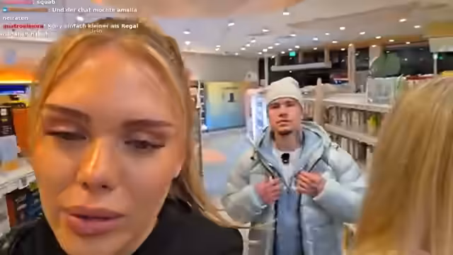 02:47:06During a visit to a Rewe supermarket, a significant event occurred that ended the live stream. An unknown person called the police, falsely reporting that Kony and her companions were carrying knives and firearms. This resulted in police officers arriving at the scene, leading to the stream being prematurely terminated. The mood shifted to frustration and anger towards the person who made the call, which was described as 'uncool' and 'incorrect'.