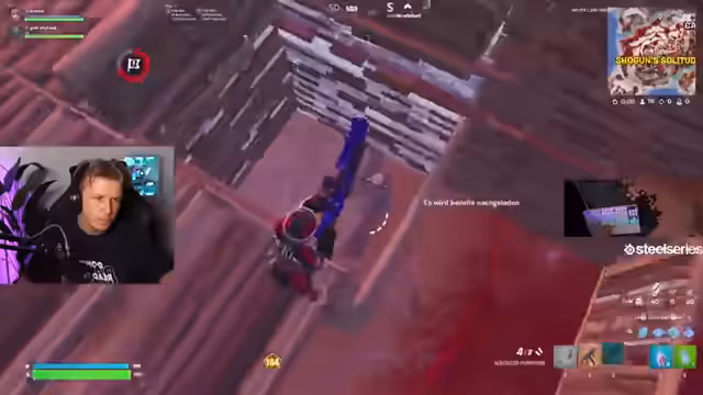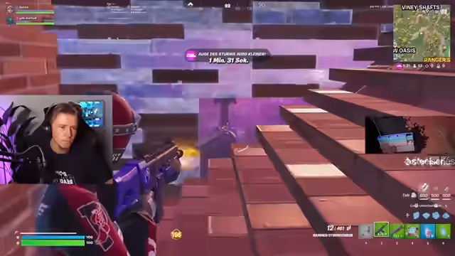 03:34:41Der Stream startet mit intensivem Gameplay in einem Battle-Royale-ähnlichen Titel. Der Fokus liegt auf der Positionsfindung, dem Bau von Basen und dem Farmen von Ressourcen wie Holz, Metall und Gold. Der Spieler ist ständig auf der Suche nach strategischen Vorteilen, nutzt die Umgebung zur Deckung und diskutiert mit seinem Team über die beste Route, um sich im Spielgebiet zu bewegen und Ressourcen zu sammeln.