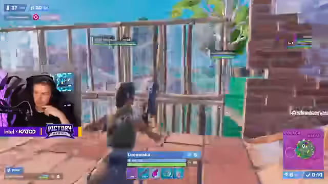 03:10:39Es läuft eine intensive Runde im Intel Qualifier, bei der hohe Ansprüche an die Spieler gestellt werden. Das Lobby-Level ist extrem hoch, mit vielen Division-1-Spielern, was zu anspruchsvollen Wettkämpfen führt. Beobachtet werden strategische Plays wie das Besetzen von High-Ground-Positionen und das Überleben in der gefährlichen 'Storm-Search'-Phase. Der Streamer analysiert das Spielgeschehen, kommentiert die Aktionen der Teams, wie zum Beispiel das Verteidigen von Lagen und das Versuch eines Solo-Klatschs einzelner Spieler, während die Zone eng und heikel wird.