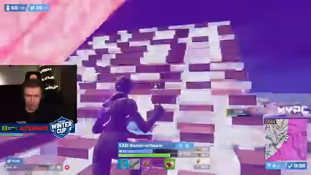 03:44:23Das Turnier schreitet voran und es wird eine Runde nur für deutsche Spieler erwähnt, was eine Ausnahme von der Regel darstellt. Ein Teilnehmer namens Ali wird als Gewinner des Free-Build-Turniers vom Vortag genannt. Der Streamer kommentiert Spielzüge wie einen Thanos-artigen Finishing Move und unterhält sich über den Rapper Lil Tecker. Ein Spieler gewinnt eine Runde mit einem starken Aim-Schuss, und der Streamer freut sich über treue Zuschauer.