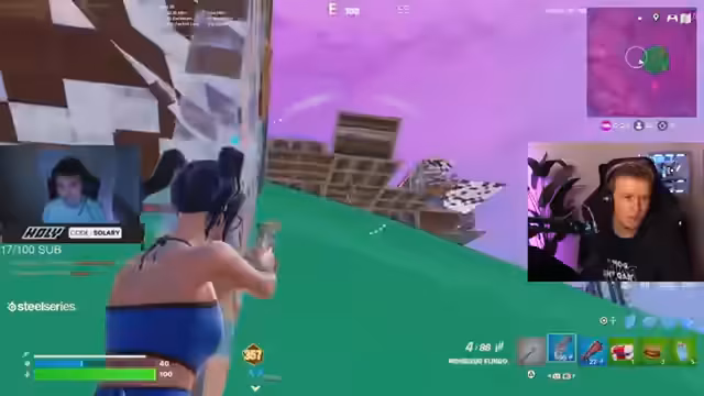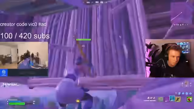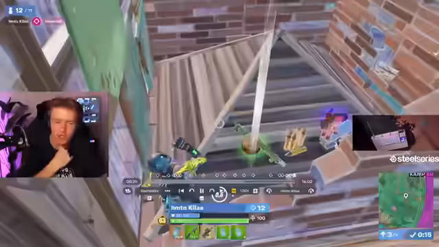01:05:07Noah und Riley befinden sich ebenfalls im 1v1 und Noah gewinnt mit 18 Kills. Julian kommt auch ins Finale und gewinnt. Es werden weitere Pros wie Vardial, Ulystria, Schmali, Fritsche und Krater in den Stream geholt, um deren Gameplay zu verfolgen. Besonders Vendetta, ein TikTok-Typ, wird im 1v1 beobachtet, wie er seine Mats klug ausspielt und einen sauberen Sieg erzielt. Joe Abi, ein 'Kante im Real Life', zeigt ebenfalls solides Fortnite-Gameplay. Reason wird erneut im Late Game beobachtet, wo er trotz eines Coaches im Hintergrund und der Anwesenheit der Pistole als Waffe, in Top 13 ausscheidet. Malibuka und Schmali werden ebenfalls gezeigt, wobei Schmali mit einem ungewöhnlichen Loadout aus Säge und Infanterie-Gewehr im Late Game überzeugt und ultra clean spielt, bevor er in Top 5 ausscheidet.