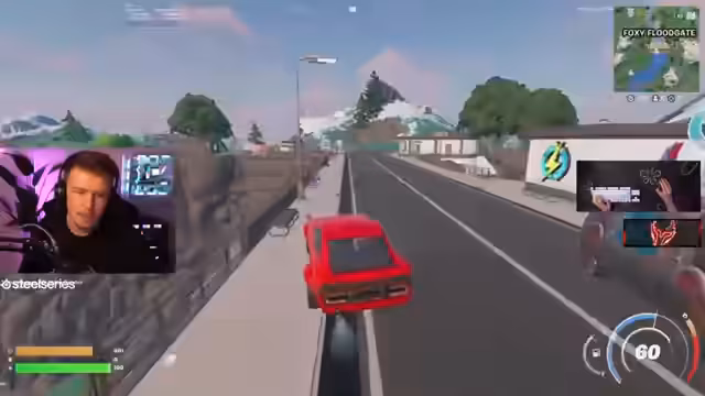 01:01:31Der Stream startet mit einem Hide and Seek Spiel in Fortnite. Die Teilnehmer versuchen sich in der Map Seaport City zu verstecken, während der Streamer sie sucht. Es gibt viele Fragen über den Versteckplatz der Teilnehmer, ob sie in Holzhütten, Tunneln oder auf Bäumen sind. Das Spiel ist chaotisch und voller unerwarteter Momente, wie das Zufallserscheinen von Monstern wie Godzilla und King Kong.