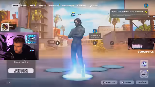01:53:19Während des Streams treten massive Serverprobleme bei Fortnite auf, die es unmöglich machen, den Spielmodus zu wechseln. Die Server sind down, was zu Frustration führt, da nur noch der Reload-Modus gespielt werden kann. Der Streamer und Jason probieren mehrmals erfolglos, den Modus zu ändern oder eine Creative Map zu finden. Der Streamer informiert den Chat über die Lage und hofft, dass die Server bald wieder funktionieren. Trotz der technischen Probleme wird das Spiel fortgesetzt.