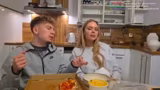 01:34:16Amalia beginnt den Abschnitt mit dem Thema Essen, präsentiert ihre Pizza und erwähnt, dass auch Chester gefüttert wird. Bei der Verteilung der Speisen kommt es zu kleinen Pannen, wie einem verschütteten Getränk auf Larry und einem fehlenden Besteck, für das ein Ersatz gesucht wird. Die Atmosphäre bleibt trotz dieser kleinen Zwischenfälle locker und humorvoll, während sie sich gegenseitig mit Spitznamen wie 'Baby' ansprechen und sich zum Essen an einen Tisch setzen.
