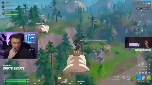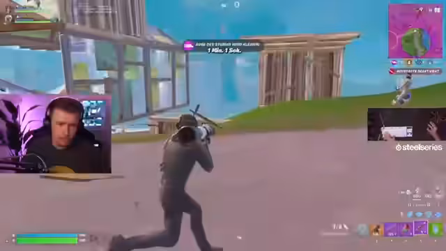 04:57:53Der Stream beginnt mit actionreichen Kämpfen in den ersten Minuten. Der Streamer landet direkt in einem Nahkampf, bei dem er Gegner mit einer Minigun und verschiedenen Waffen eliminiert. Er erwähnt Blut, Skins und betont die Notwendigkeit von Loot wie Schilden und Munition. Es folgen weitere intensive Auseinandersetzungen in einem verriegelten Bereich (Rift), in dem er versucht, Gegner aus der Luft und in Häusern zu bekämpfen. Der Fokus liegt auf dem schnellen Aufbau von Ressourcen und der Ausschaltung von Gegnern, oft im Team.