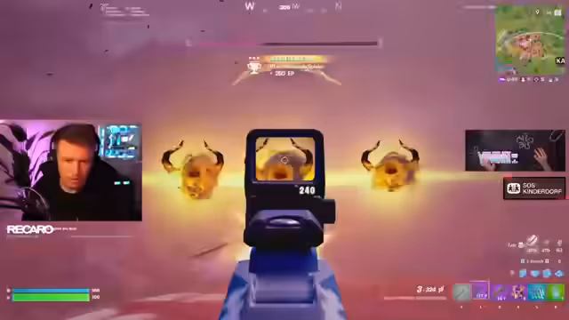 02:32:28Der Streamer konzentriert sich auf das Gameplay des Spiels Fortnite und interagiert mit seinen Mitspielern. Er erwähnt, dass er einen Hund hat, der bei Menschenansichten aufgeregt wird. Er zeigt sich amused über die kreativen Namen, die andere Spieler verwenden, wie 'Aldi' und 'Hintler'. Er spielt gezielt mit Zuschauern und unterstützt sie im Spiel, was für eine engagierte Community spricht. Der Streamer gibt auch an, mit 5 Minuten Verzögerung zu streamen, um unfaire Vorteile zu vermeiden.
