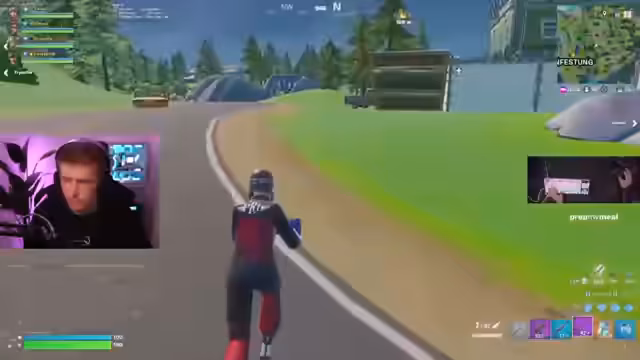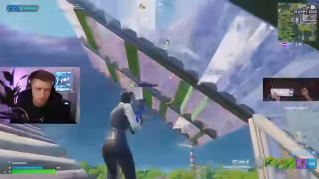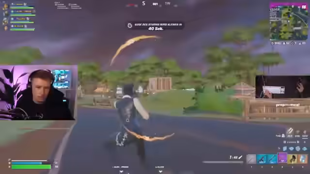 06:06:00Es wird vermutet, dass sich die Gruppe in einer reinen Elite-Lobby befindet. Es wird überlegt, wie man aus Slurpee herausspielen soll. Ein Spieler wird als "Bananenhaft" bezeichnet. Es werden Schüsse abgegeben und Kills erzielt, aber es wird auch viel verfehlt. Es wird festgestellt, dass kein einziges Team komplett stirbt. Ein Spieler hat Ego-Probleme und wird deswegen geärgert. Ein Jetpack wird gefunden, aber es gibt Probleme damit, es zu benutzen. Es wird festgestellt, dass es ein Mini-Live-Event in Battle Royale gibt. Es wird überlegt, ob man die Franzosen angreifen soll. Es wird festgestellt, dass die Gruppe vier Spieler stark ist. Es wird überlegt, ob man alleine pushen soll oder nicht. Es wird festgestellt, dass es viele Spieler auf der Brücke gibt. Es wird überlegt, wie man sich am besten heilen kann. Es wird festgestellt, dass es viele Swights unter der Brücke gibt. Es wird überlegt, wie man sich am besten positionieren soll. Es wird überlegt, ob es irgendwo Slurp Trucks gibt. Es wird festgestellt, dass alle durch die Stadt direkt Full-Healing hatten.