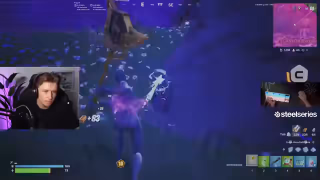 00:04:36Der Streamer startet ins erste Match des PlayStation Cup auf der Map Middle East. Er spielt mit Revolver Pump und Crash Pads, merkt aber den hohen Input Delay auf Konsole und die unstacked Lobbies, in denen alle Spieler Revolver Pump verwenden. Trotz der technischen Schwierigkeiten und des High Pings schafft es der Streamer, Top 11 zu erreichen.