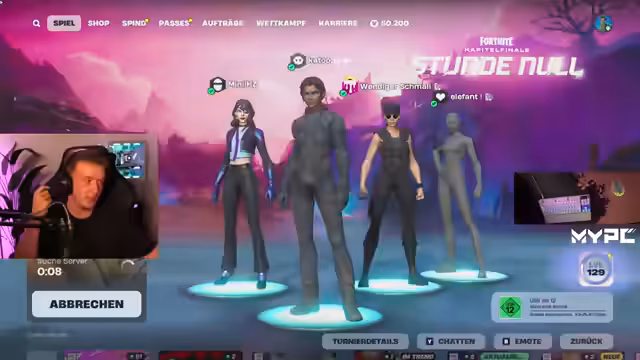 02:41:08Die Teilnahme am Squad Cup wurde vorbereitet. Eine Runde wurde gespielt, in der der Streamer und sein Team Top 3 erreichten. Es wurden neue Map-Elemente wie die 'Squeezies' und Donuts diskutiert, die strategische Vorteile bieten. Das Gewinner-Team erhielt 1000 V-Bucks, die sich der Gewinner auf Discord melden musste.