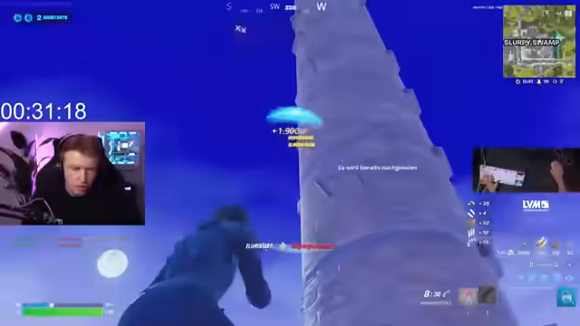 00:13:40Das erste Spiel beginnt mit dem Sprung aus dem Battle Bus. Der Streamer ist sich der Schwierigkeit von Simple Edit nicht voll bewusst, als er direkt in einen harten Kampf involviert wird. Obwohl er den Gegner nach anfänglichen Schwierigkeiten ausschalten kann, stellt er fest, dass die Lobby aus unerwartet starken Spielern zu bestehen scheint, die ihm den Sieg nicht leicht machen. Es stellt sich heraus, dass auch der Gegner Simple Edit verwendet, was den Kampf noch unvorhersehbarer macht. Die ersten Kills werden jedoch erfolgreich erzielt.