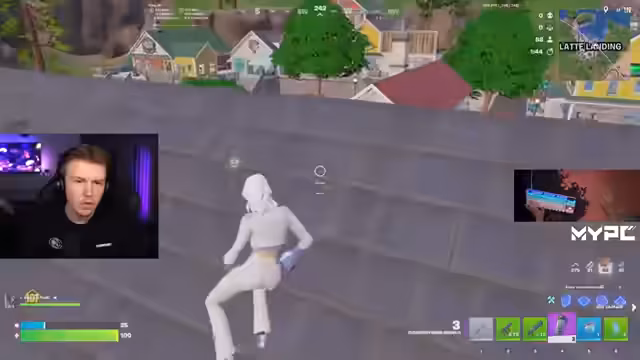 00:24:39Das Gameplay wird intensiver, als das Team in ein Kampfgeschehen verwickelt wird. Der Streamer meldet gegnerische Teams und strategische Positionierungen, wie z.B. ein Königsspiel der Gegner. Es werden Bauelemente wie Metal und Cap eingesetzt, um strategische Vorteile zu sichern. Die Diskussionen drehten sich um den Einsatz von Waffen wie der Pumpgun und der Madness, während das Team seine Position auf der Karte anpasst und versucht, sicher zu rotieren.
