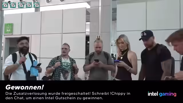 00:07:23Der Stream beginnt mit der Vorstellung der Teams und der Erklärung der Intel Gamescom Hunt. Streamer Kato und Henki sowie ihr Gegnerteam müssen fünf Chippys auf der Gamescom finden. Dabei gibt es Gewinnchancen für die Zuschauer über den Command 'Intel Insight'. Die Teams treten gegeneinander an und wer, zusätzlich zu den Chippys, mehr Rätsel löst, schaltet weitere Gewinnspiele frei.