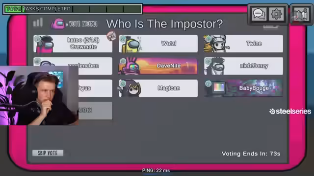 02:30:13Im weiteren Verlauf des Streams wird intensiv darüber diskutiert, welcher Spieler der Imposter sein könnte. Der Streamer analysiert die Handlungen anderer Spieler und äußert Vermutungen über deren mögliche Absichten. Es kommt zu mehreren Votings, bei denen Spieler aus dem Spiel geworfen werden. Der Streamer betont die Wichtigheit von logischem Denken und Beobachtung, um den Imposter zu identifizieren und das Spiel zu gewinnen.