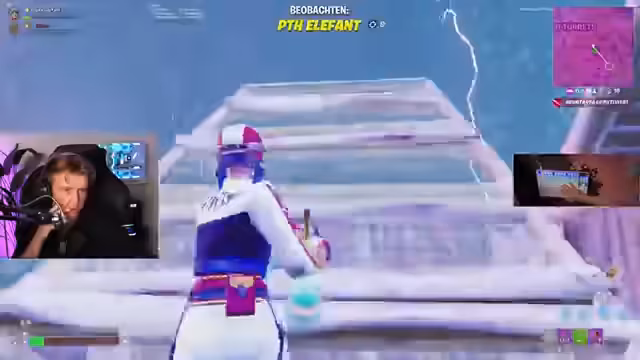 00:15:09Im laufenden Spiel kommt es zu intensiven Kämpfen. Das Duo stellt fest, dass die Gegner gut sind und die Lobbys 'verschwitzt' sind. Es folgen mehrere Gefechte, wobei der Streamer mehrfach verwundet wird, sich aber mit Heilungsitems stabilisiert. Ein besonderes Highlight ist das Erbeuten eines 'Mammut'-Tiers in-game, das für zusätzliche Materialien sorgt. Das Duo kommuniziert ständig über Gegnerpositionen und versucht, überzuleben und die Zone zu halten.