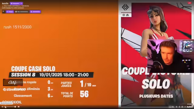 04:34:02Der Stream beginnt mit einer intensiven Spielrunde in Fortnite. Der Spieler befindet sich in einem 1v1-Duell und erlebt aufregende Momente, darunter das Ausscheiden von Gegnern und das Sammeln von Gegenständen. Er analysiert auch das Leaderboard und seine Punkte, wobei er sich in einem bewaffneten Gefecht befindet. Der Spieler ist darauf bedacht, seine Ausrüstung zu optimieren und strategische Entscheidungen zu treffen, um die Runde für sich zu entscheiden.