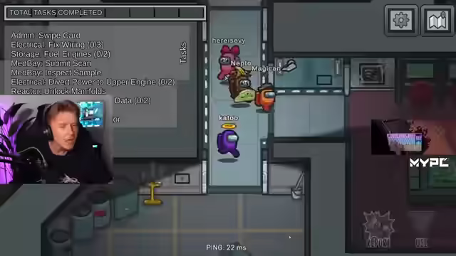 02:27:52Eine weitere Among Us Runde beginnt, in der Katoo Impostor ist. Er bemerkt einen Delay auf dem Vent und beobachtet, wie Trios gegen eine Wand rennt. Katoo, der Engineer ist, stellt fest, dass Nepto weiß, dass er Engineer ist. Er sieht, wie Leslie ihre Aufgabe erledigt und Nepto sich scannt. Katoo hat Twine die ganze Zeit nicht gesehen. Es werden drei Kills reportet, darunter Leslie in Security. Katoo gibt an, dass er weiß, dass sich Trios in Electrical befindet. Er diskutiert mit Nepto über dessen Aufenthaltsort und erwähnt, dass Kato wenden kann. Katoo skippt den Vote und entschuldigt sich bei demjenigen, der möglicherweise fälschlicherweise rausgevotet wird. Er spielt mittlerweile nach Bauchgefühl und kritisiert das Buch der Weisheit. Katoo äußert Frustration darüber, dass sie schon lange keinen Imposter-Win mehr hatten. Er wird in Upper Engine getrappt und Neptu geht in Mad Bay, wo eine Tür geschlossen wird. Katoo geht davon aus, dass Neptu gewendet ist. Er wollte Neptu als Imposter an den Pranger hängen, aber das hat sich erledigt. Katoo kommt zu dem Schluss, dass Leslie ihn komplett verarscht hat. Er erkennt, dass es zwei Imposter gibt und die Runde vorbei ist. Katoo wird aus dem Knopf geworfen und schließt daraus, dass es nur Trios oder Wutzi sein kann. Er findet es interessant, dass Magic gerade aus Admin rausgegangen ist und theoretisch bei ElectroKill einfach hinwenden konnte, um den Kill zu machen und dann wieder zurückzukehren. Katoo fordert, dass Trios rausgewählt wird. Am Ende stellt sich heraus, dass Magic die ganze Zeit gegen die Wand gefahren ist. Katoo wurde gesperrt und eingeschränkt, weil er vergessen hat, dass man nur eine Rolle haben kann.