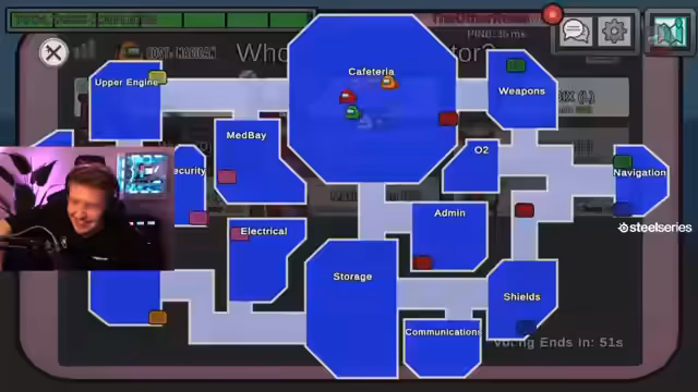 00:40:39Das Spiel geht weiter, die Spieler werden routinierter in der Durchführung ihrer Aufgaben und im Verdächtigen. Es kommt zu weiteren Sabotagen und Votings, bei denen teils richtige, teils falsche Entscheidungen getroffen werden. Ein Spieler muss aus technischen Gründen das Spiel verlassen, was zu einer kurzen Unterbrechung führt. Die Streamer nutzen die Zeit für eine kurze Pause und zum Austausch über den bisherigen Spielverlauf.