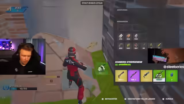 00:39:05Ein Wechsel auf Controller führt zu weiteren Schwierigkeiten. Der Streamer beschreibt die Steuerung als 'Scheiß', was sein Gameplay massiv beeinträchtigt. Er beklagt, aufgrund von Bugs und dem unpräzisen Aim zu sterben. Gleichzeitig gibt es interne Spannungen im Team, da Dave bereits zwei Wins hat und der Streamer betont, nicht mehr an der Map teilnehmen zu wollen.