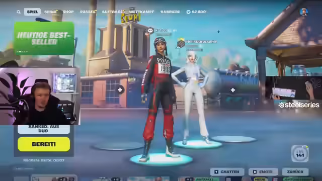 00:55:54Nach Abschluss der Minigames wird die Vorbereitung für die nächste Aufnahme getroffen. Man erstellt eine neue öffentliche Lobby mit einem Code, um neue Spieler einzuladen. Der Streamer möchte eine Runde "Reload" spielen, ein Duo-Format, bei dem ein Teammitglied nur bauen und das andere nur schießen darf. Dies erfordert eine klare Absprache der Teams. Während man auf den letzten Spieler wartet, werden die Teams aufgestellt. Der Streamer spielt mit Magikin, während Stan und Flo ein zweites Team bilden. Die Dynamik der Teamzuteilung wird als unangenehm und kindisch empfunden.