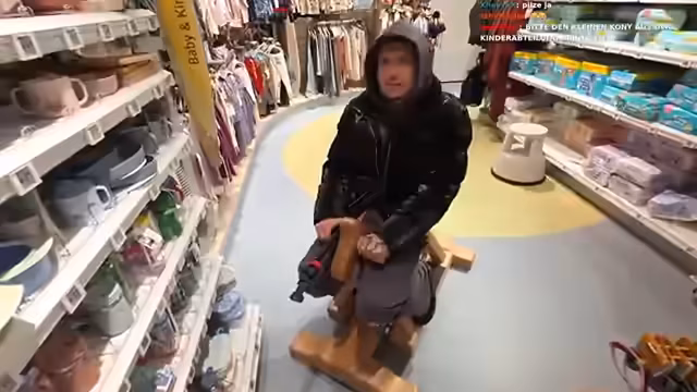 03:31:24Die Gruppe begibt sich auf eine Shopping-Tour in einen Supermarkt. Cony sucht nach einem Augenbrauenstift mit sehr dünner Spitze, um einzelne Härchen nachzuzeichnen. Nach Rücksprache mit Amalia und dem Chat entscheidet er sich für einen wasserfesten Eyebrow Stift von Catrice. Es werden verschiedene Kosmetikprodukte besprochen, darunter auch ein Botox-Lip-Flip von Amalia. Cony äußert Bedarf an Rasierschaum und Deo. Es gibt eine humorvolle Interaktion, als Cony versucht, Cony mit einem Schnuller zu beruhigen und eine Windel zu wechseln, was auf großen Widerstand stößt.